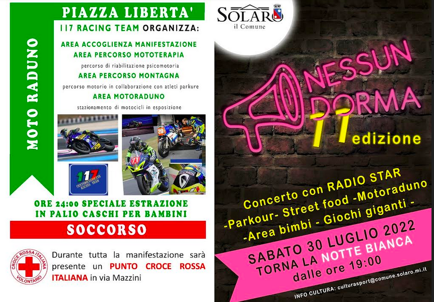 Torna la Notte Bianca di Solaro con un ricco programma di eventi proposto dall’amministrazione comunale, dalle associazioni culturali e sportive e dalle attività commerciali del territorio.