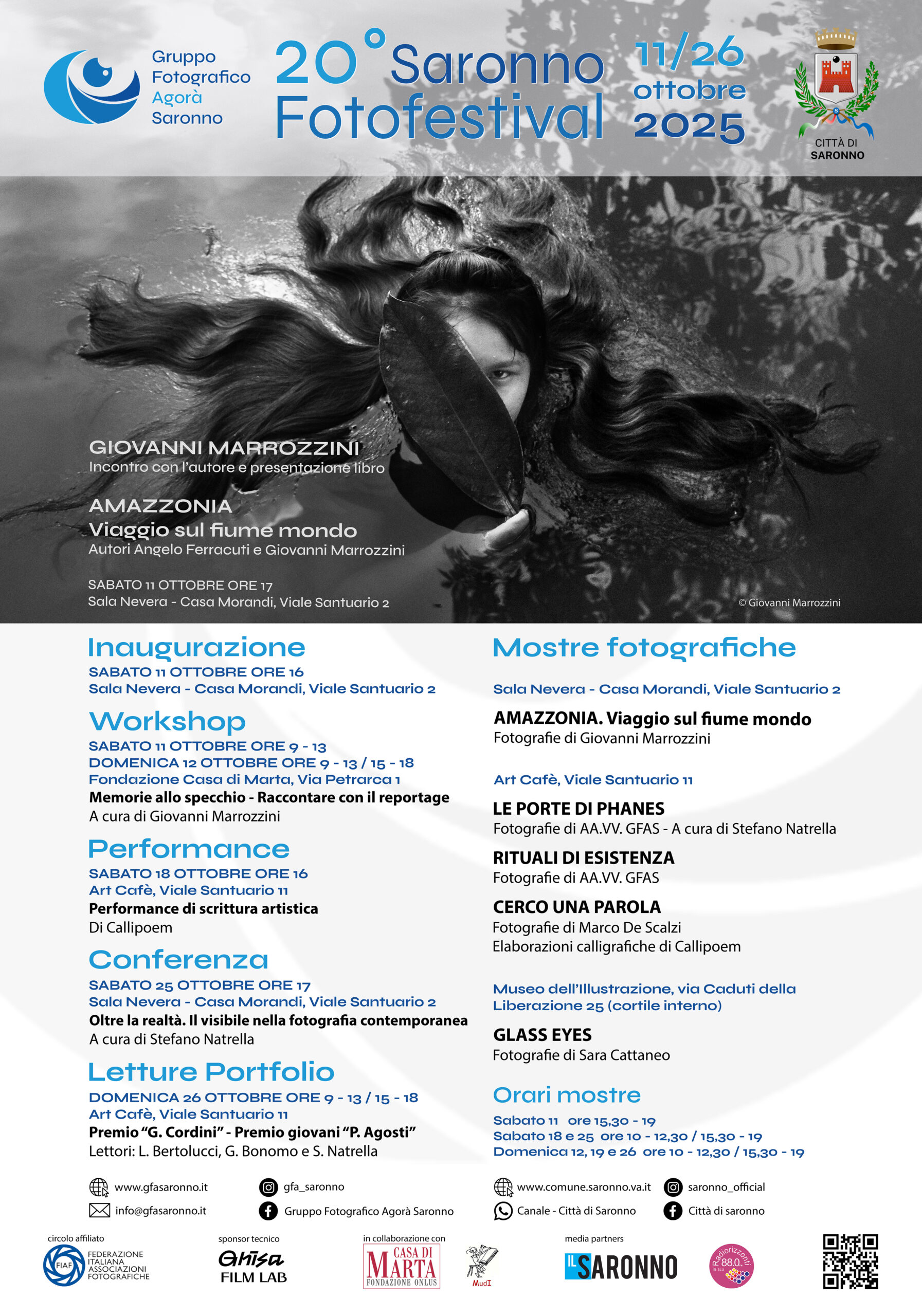 Saronno si trasforma anche quest’anno in una grande galleria diffusa per ospitare il Saronno Fotofestival, l’evento che dal 2005 porta la fotografia in ogni angolo della città. Organizzata con il patrocinio del Comune, la ventesima edizione segna un traguardo importante per questa manifestazione ormai diventata un punto di riferimento per gli appassionati di fotografia.